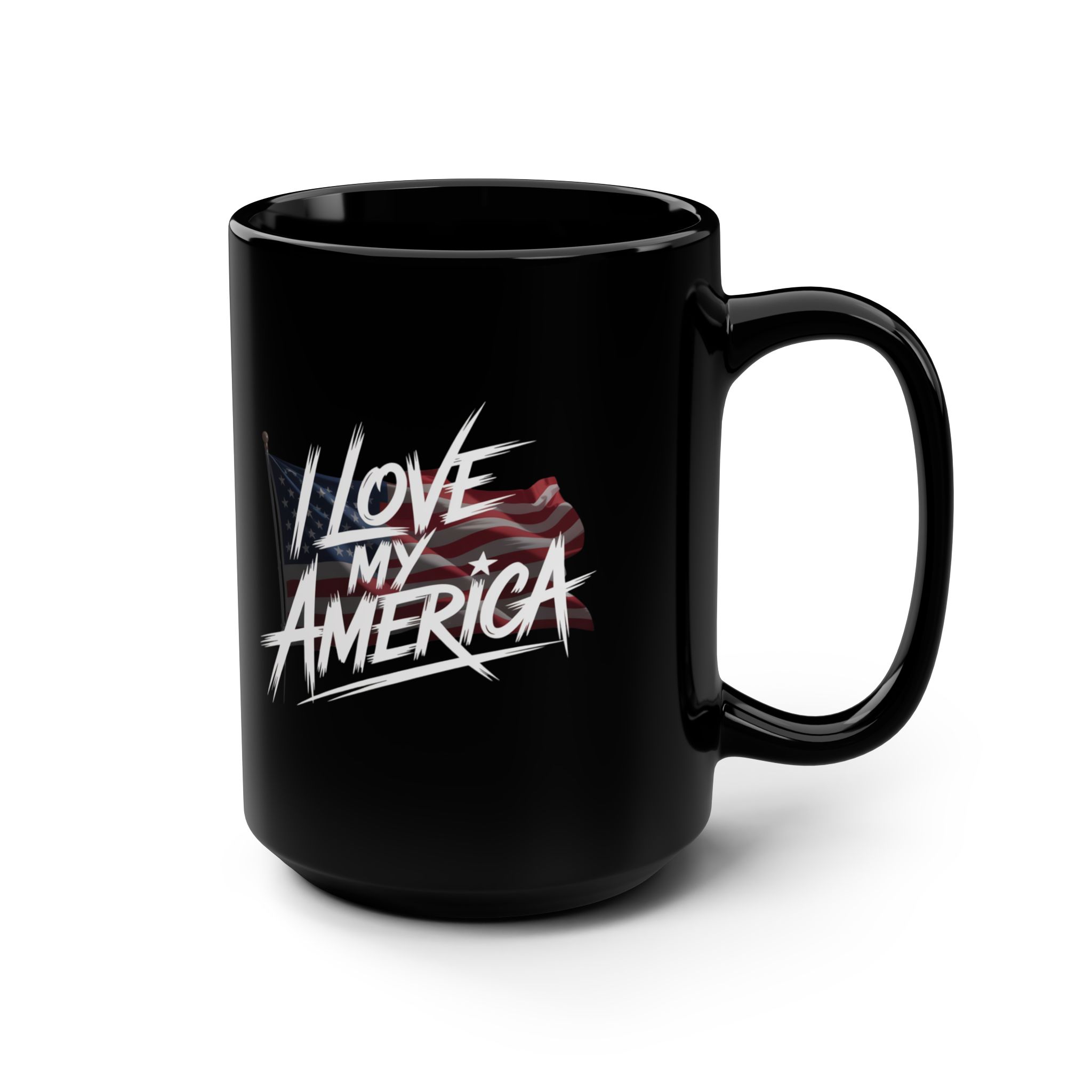 I Love America, Patriotic Coffee Mug, Black Mug, Gift for Veterans, Fourth of July Decor, USA Spirit, Independence Day