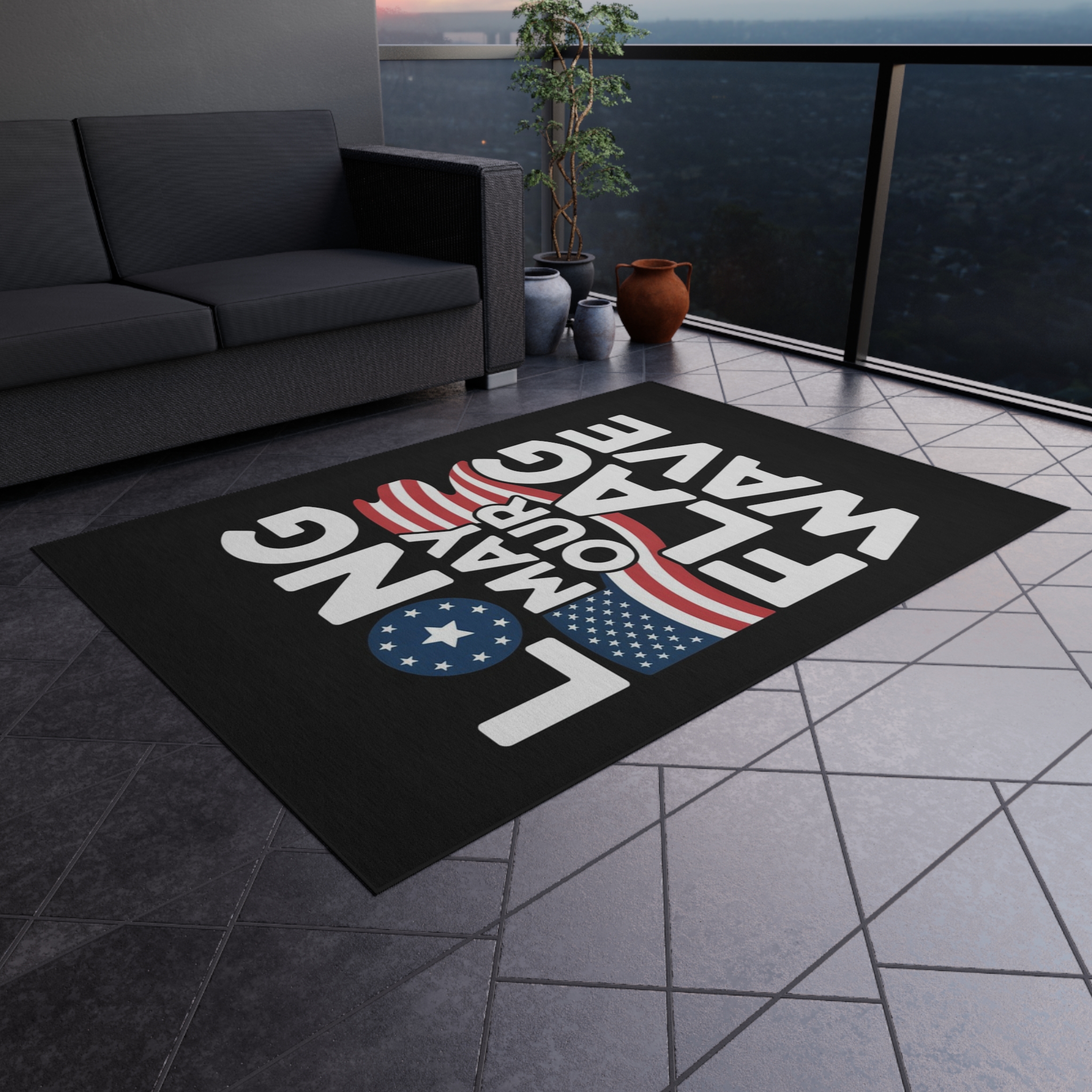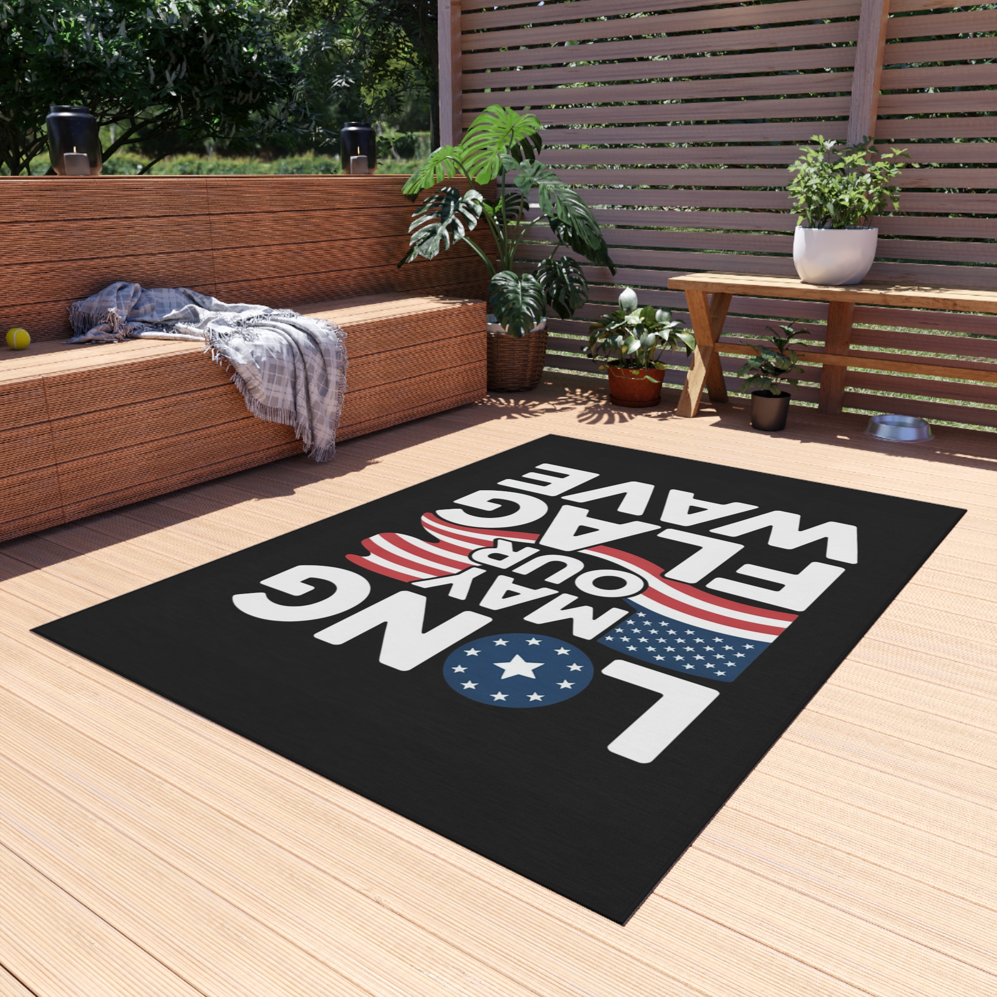 Transform your outdoor space with our stunning Outdoor Rug, perfect for adding a touch of comfort and style to patios, balconies, or gardens. This eye-catching rug showcases vibrant colors and trendy designs, creating a warm and inviting atmosphere for your gatherings. Made from 100% polyester chenille, it offers a plush feel while remaining durable and resistant to pilling. Ideal for those who love to entertain outdoors or simply enjoy relaxing in a beautifully decorated area. Perfect for summer barbecues, Fourth of July celebrations, or cozy autumn evenings. This versatile rug is a must-have addition for the home of anyone who appreciates both style and functionality.