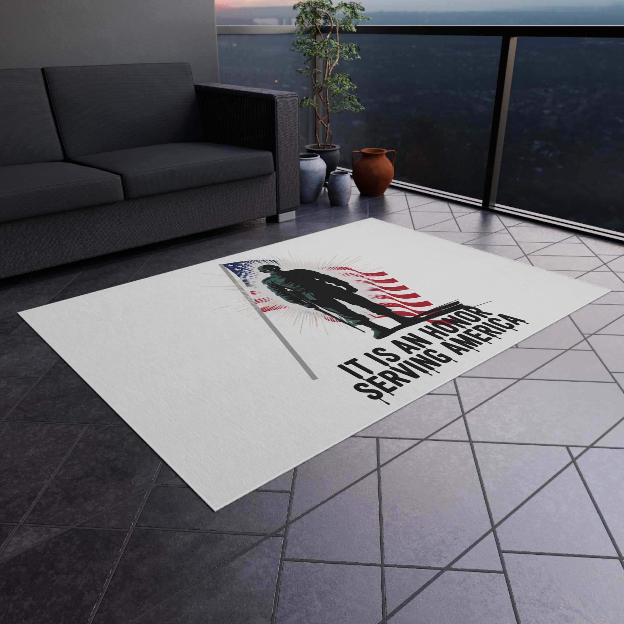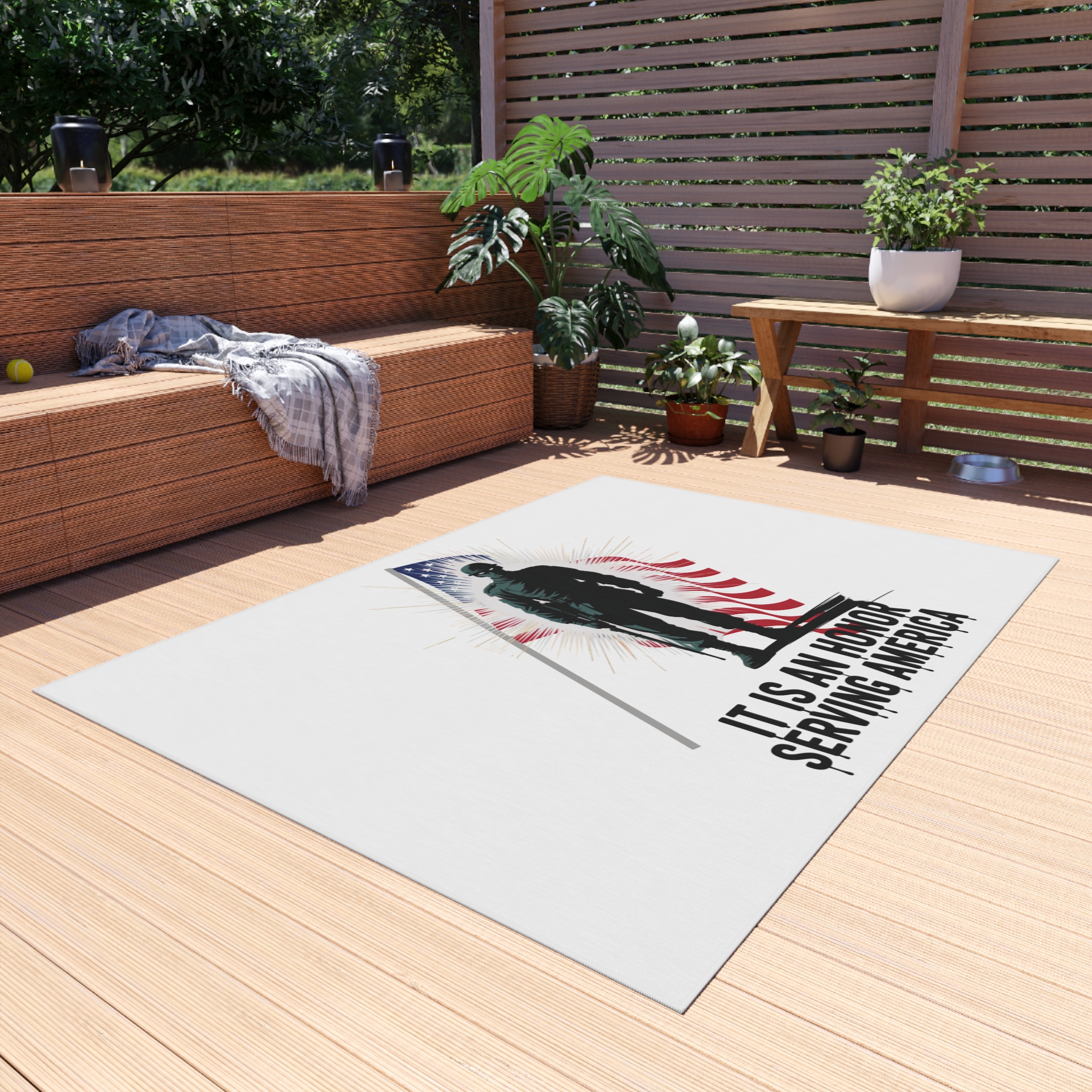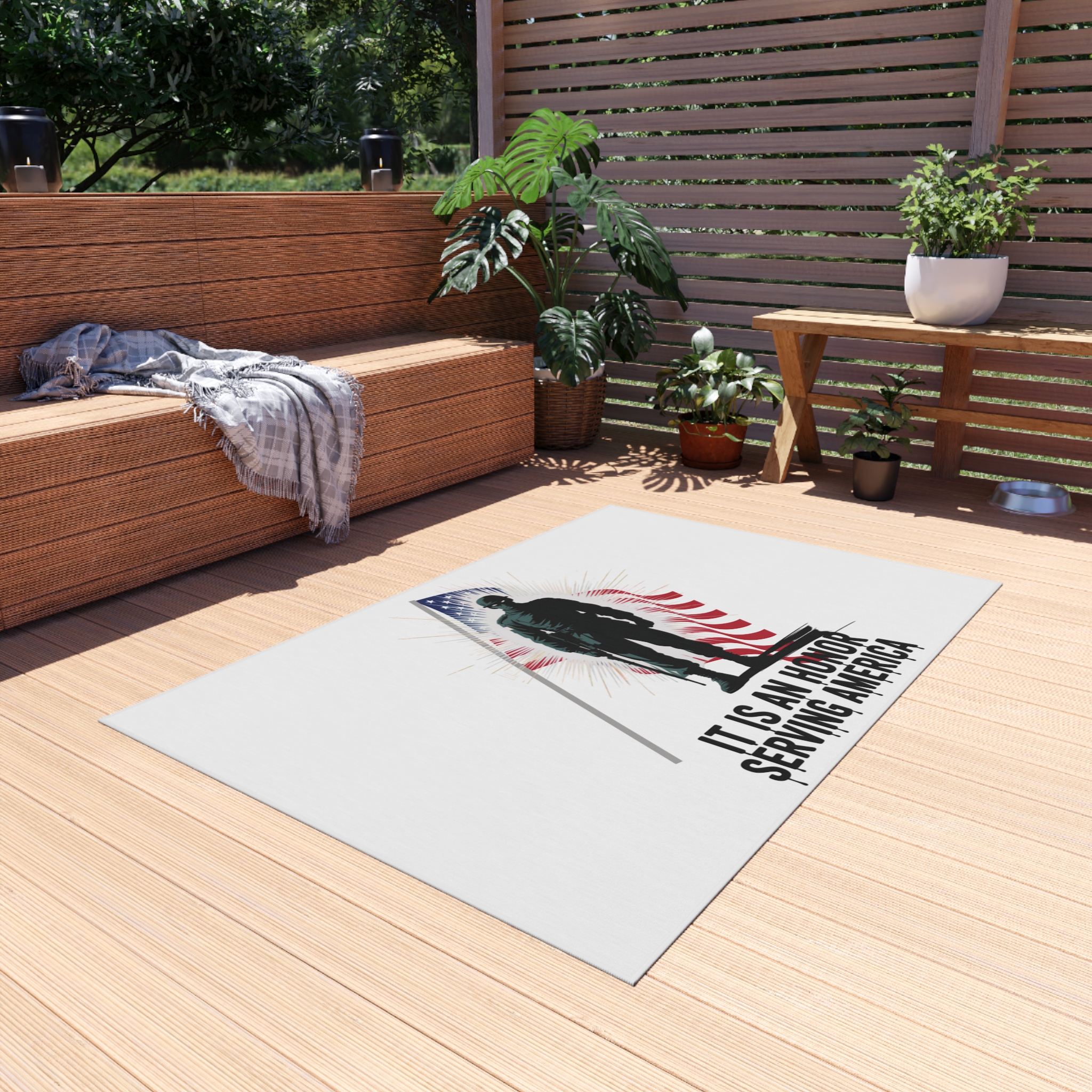 Patriotic Outdoor Rug – Military Tribute, Perfect for Veterans Day, Memorial Day Decor, Porch Mat, Outdoor Area Rug