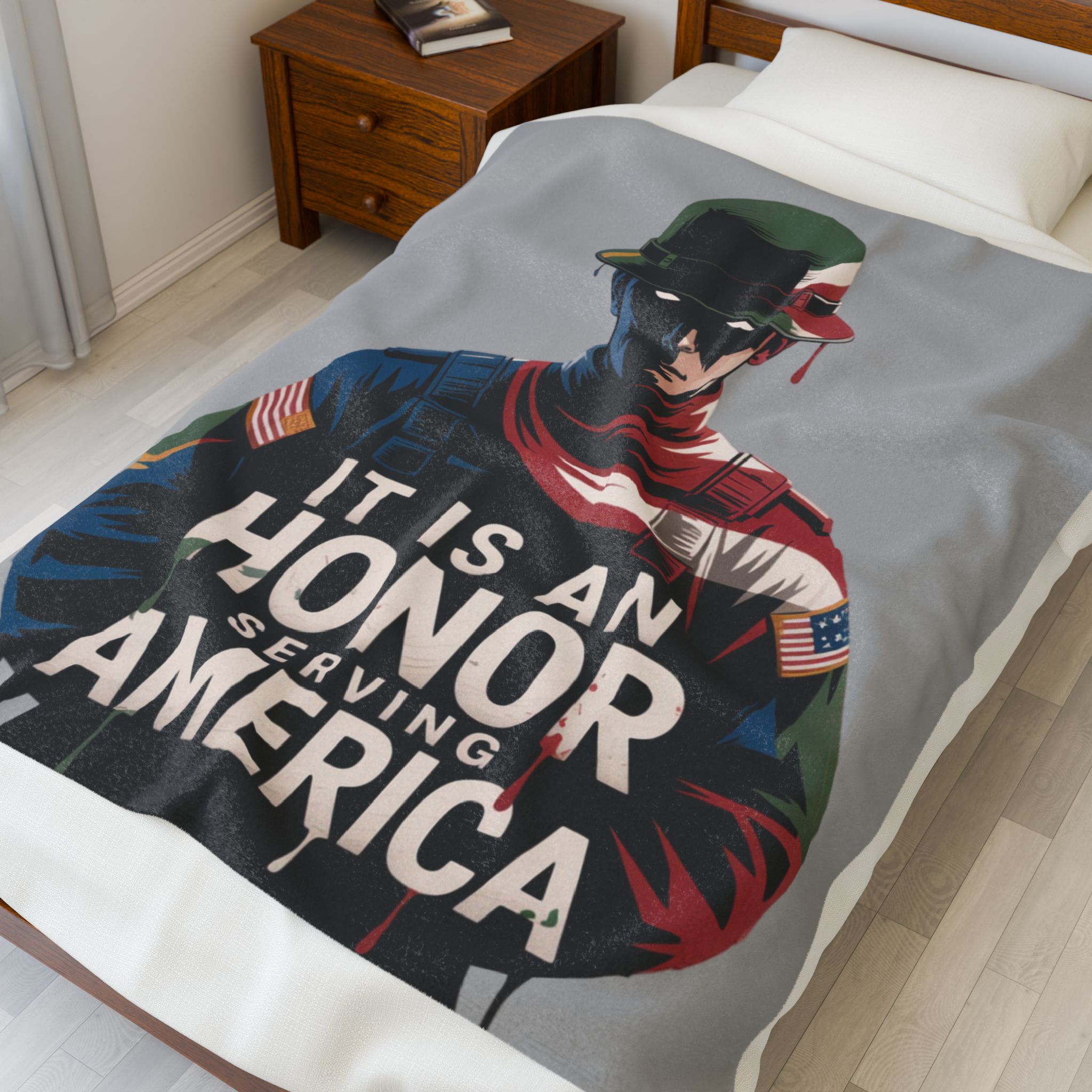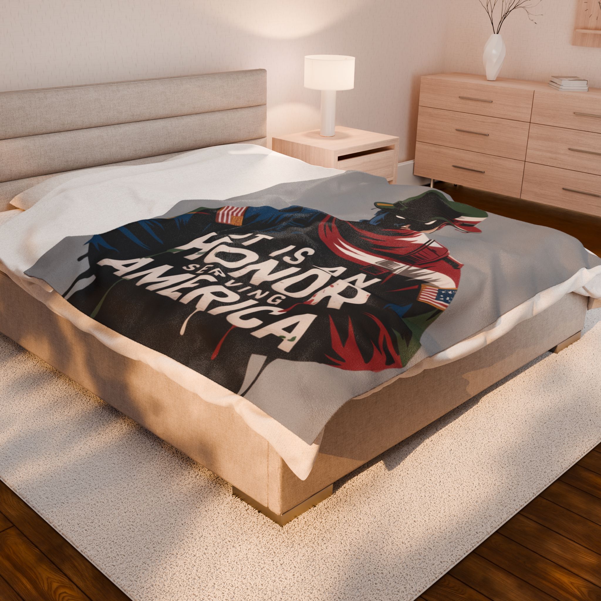 Patriotic Velveteen Plush Blanket – Cozy Gift for Veterans, Military Appreciation, Home Decor, Memorial Day, Thoughtful Gift