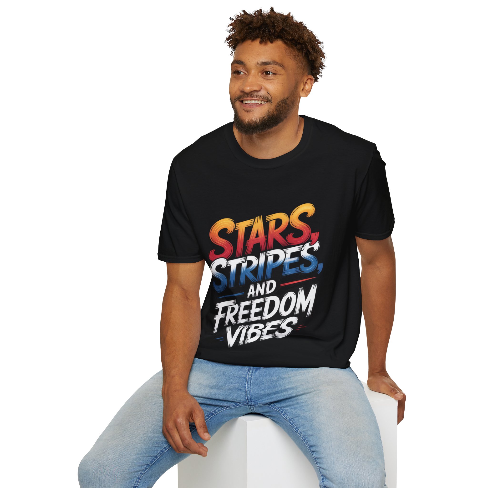 STARS, STRIPES AND FREEDOM VIBES T-Shirt | Unisex Tee for Celebrations, Independence Day, BBQs, Casual Wear, Gift Ideas
